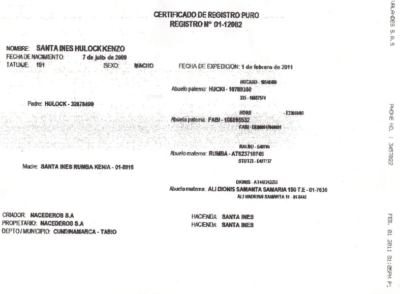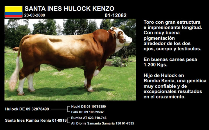 NOMBRE COMPLETO: Santa Ines Hulock KenzoNÚMERO: 191 REGISTRO: 01-12082 FECHA DE NACIMIENTO: 07/07/2009TIPO: D.P. – RAZA: SIMMENTALPADRE: HULOCK MADRE: SANTA INES
