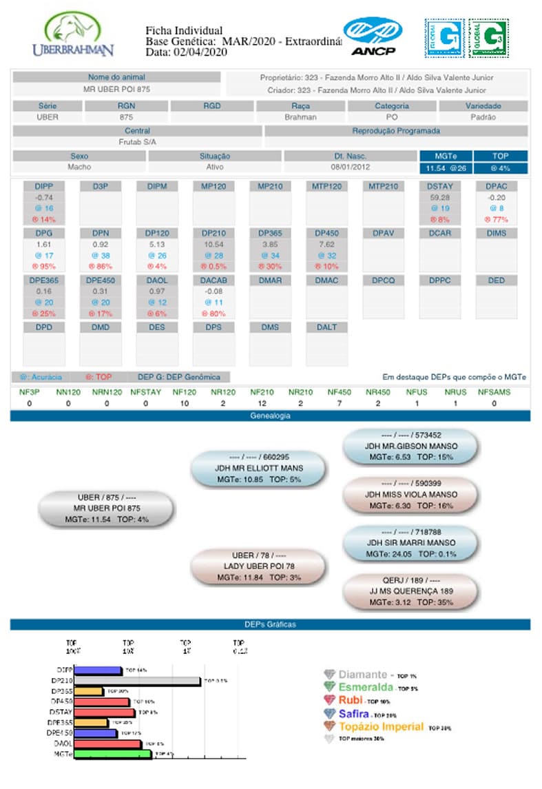 - Mr UBER POI 875 es Élite en Prueba de Desempeño ABCZ / UberBrahman y Superior en Prueba de Eficiencia Alimenticia.